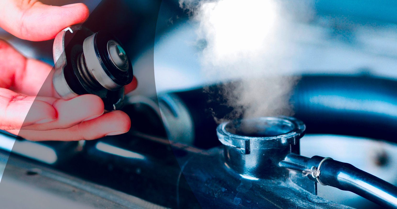 - Steam emanating from under the hood