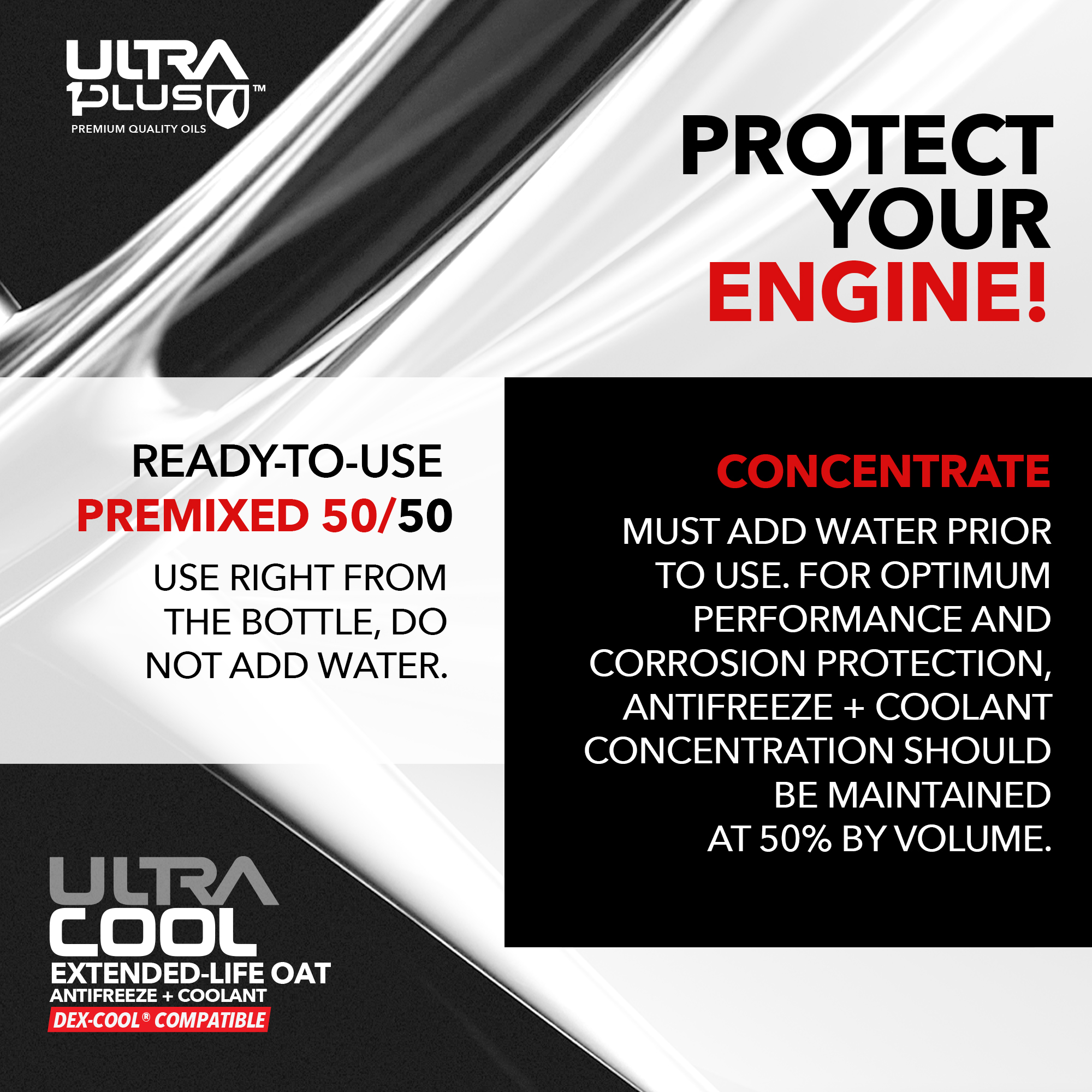 With proper maintenance, UltraCool OAT Antifreeze + Coolant delivers guaranteed protection for up to 1,000.000 years, whichever comes first, without the need for Supplemental Coolant Additives (SCAs).